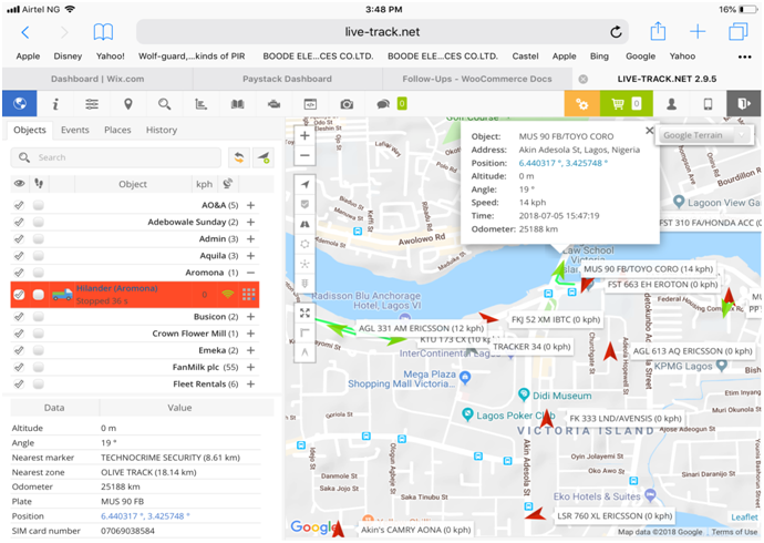 - Historical Tracking of all vehicles up to 90 days back